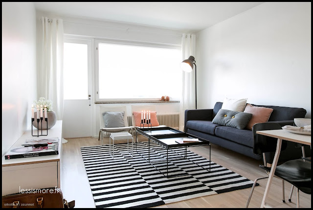 Lupasin eilen esitellä myynnissä olevaa suomalaista asuntoa ja tässä se nyt on. Ja stailattuna ihan viimeisen päälle. Stailauksen on tehnyt jo aikaisemminkin mainitsemani Less Is More. Näyttää todella hyvältä! Suosikkini on ehdottomasti keittiön musta seinä ja puiset avohyllyt. *kateellinen* Tälläisiä myynti-ilmoituksia katselisin mielelläni useamminkin. Löysin tämän Oikotien Unelmien Asunnot-facebook sivujen kautta. Mitäs mieltä olette?!
